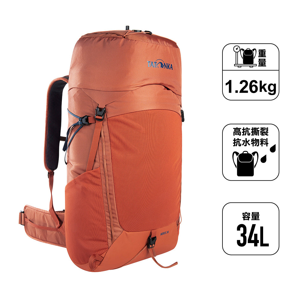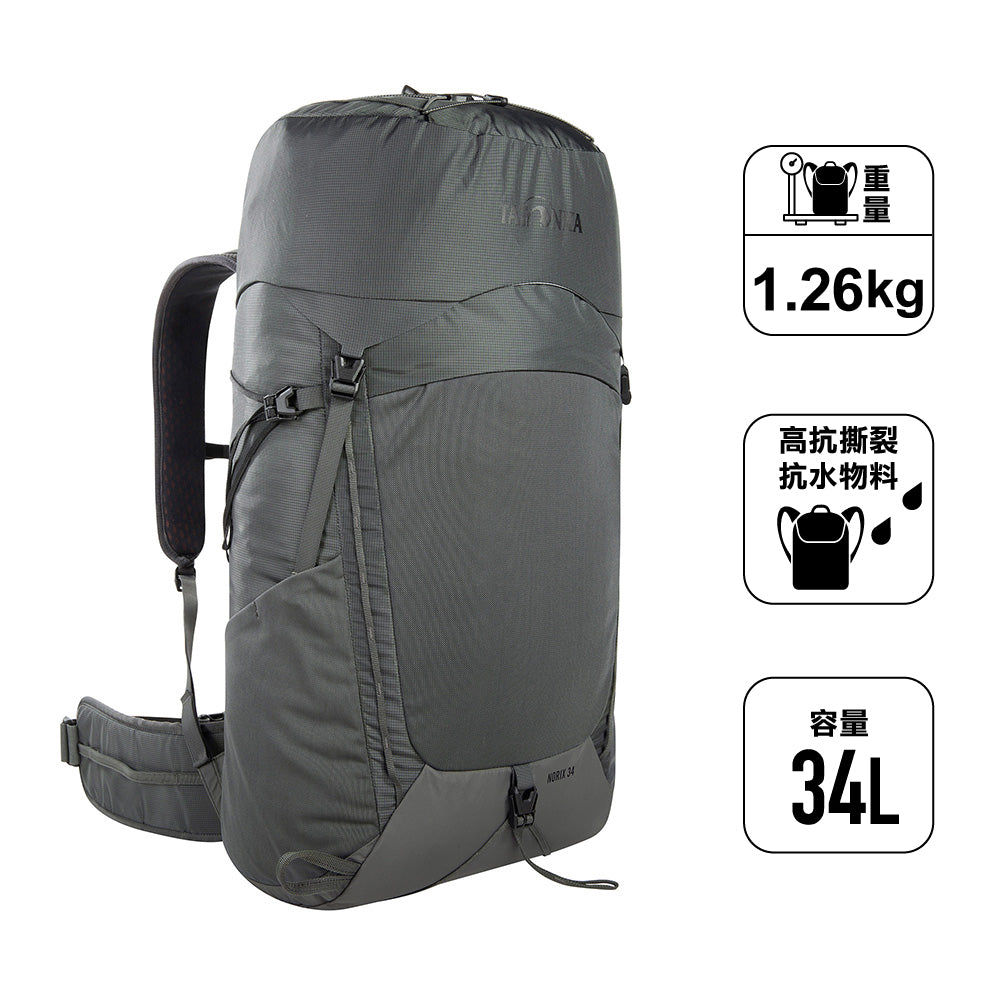 這款Norix 34健行背包採用接觸式背負系統,容量為34公升。它貼合身形,即使在高強度的山區健行中也能提供出色的負重控制。背部襯墊附有通風槽和透氣網布,確保舒適的空氣流通。背包背面設有大開口,方便取用主隔層物品。彈性前口袋和側袋、頂蓋隔層、裝備環以及頂蓋上的彈性蜘蛛網,提供了豐富的收納和掛飾選擇。肩帶和腰帶上的裝備環在攀岩時非常實用:如果您需要在沒有保護的情況下攀爬,可以將攀岩裝備的登山扣整齊地收納其中。腰帶在不需要時可以拆卸。