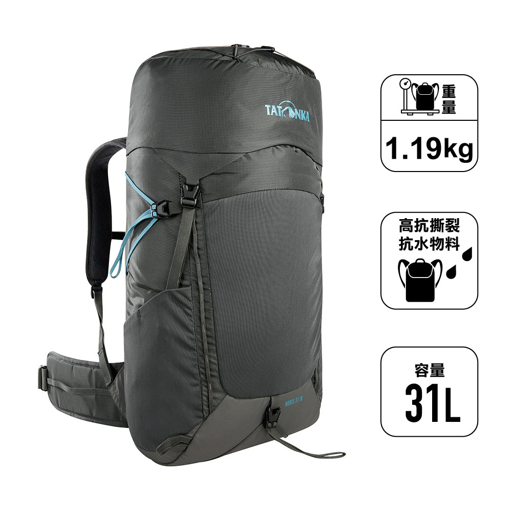 Norix 31 女款背包是應對高強度山區健行的理想之選。其貼合式背負系統可在劇烈運動中提供完美貼合的支撐。肩帶符合女性人體工學設計,背部襯墊帶有通風槽和透氣網眼布料,確保舒適的空氣流通。加厚腰帶和可調式胸帶可將背包牢固固定。