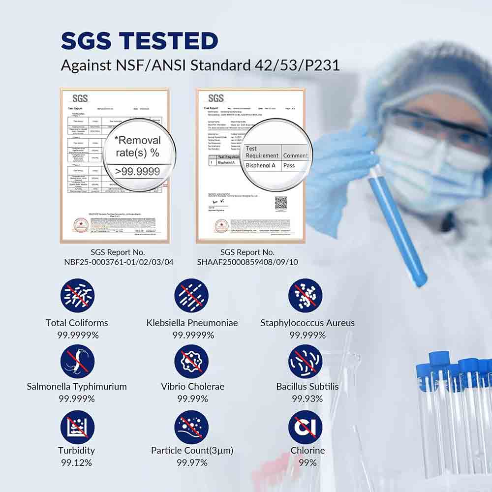 ‧ 6-Stage Filtration, Remove Bacteria, Chlorine and Improve Taste